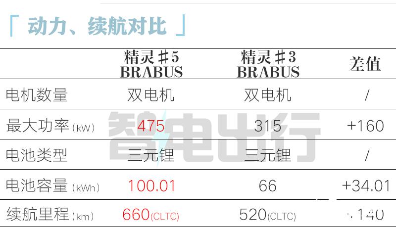 精灵 #5 提供单电机后驱、双电机四驱动力系统,最大功率分别为 250/267kW、165+267/165+310kW。入门版搭载 76kWh 磷酸铁锂电池组,续航 570km;其他车型均搭载 100.01kWh 三元锂电池组,预计单电机车型续航 720km、740km,四驱车型续航 660km、670km。