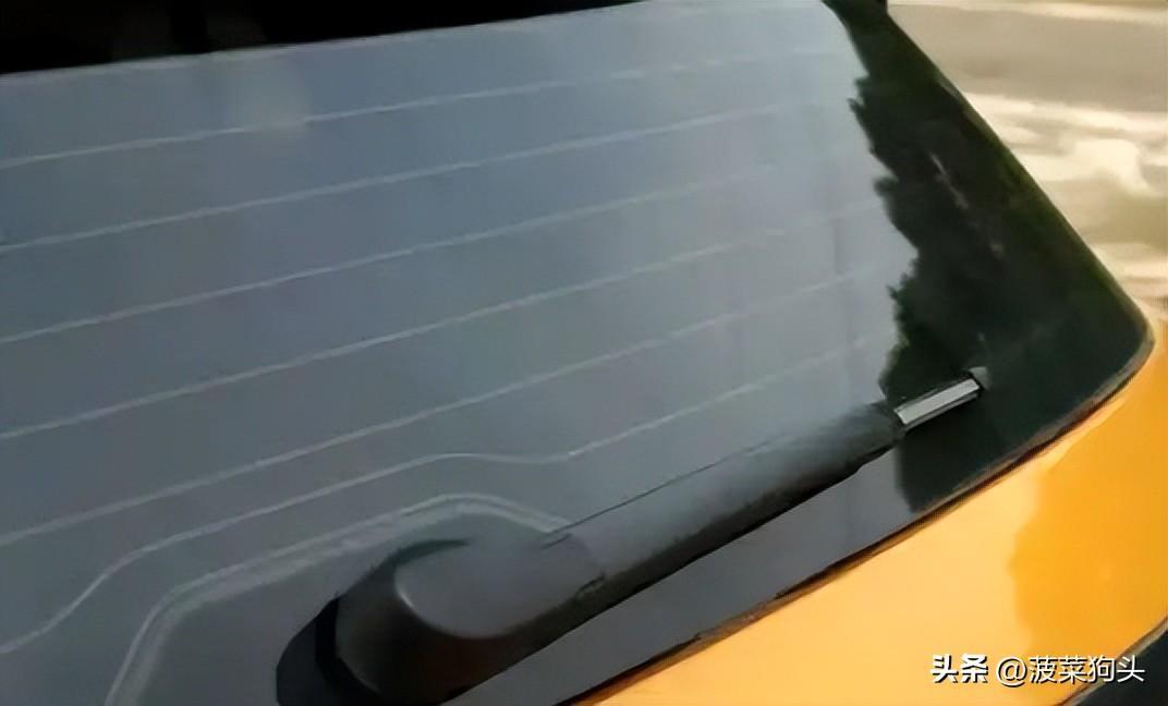 如果上面有一条条“细线”,那就说明这个后挡风玻璃是有加热功能的,因为那些“细线”就是电热丝。