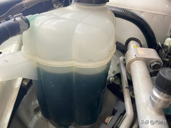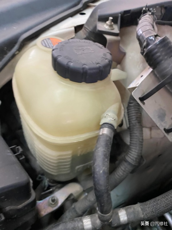 发动机的冷却液系统有两个水箱,一个是主水箱,一个是副水壶,暖水箱这里就不讲了。