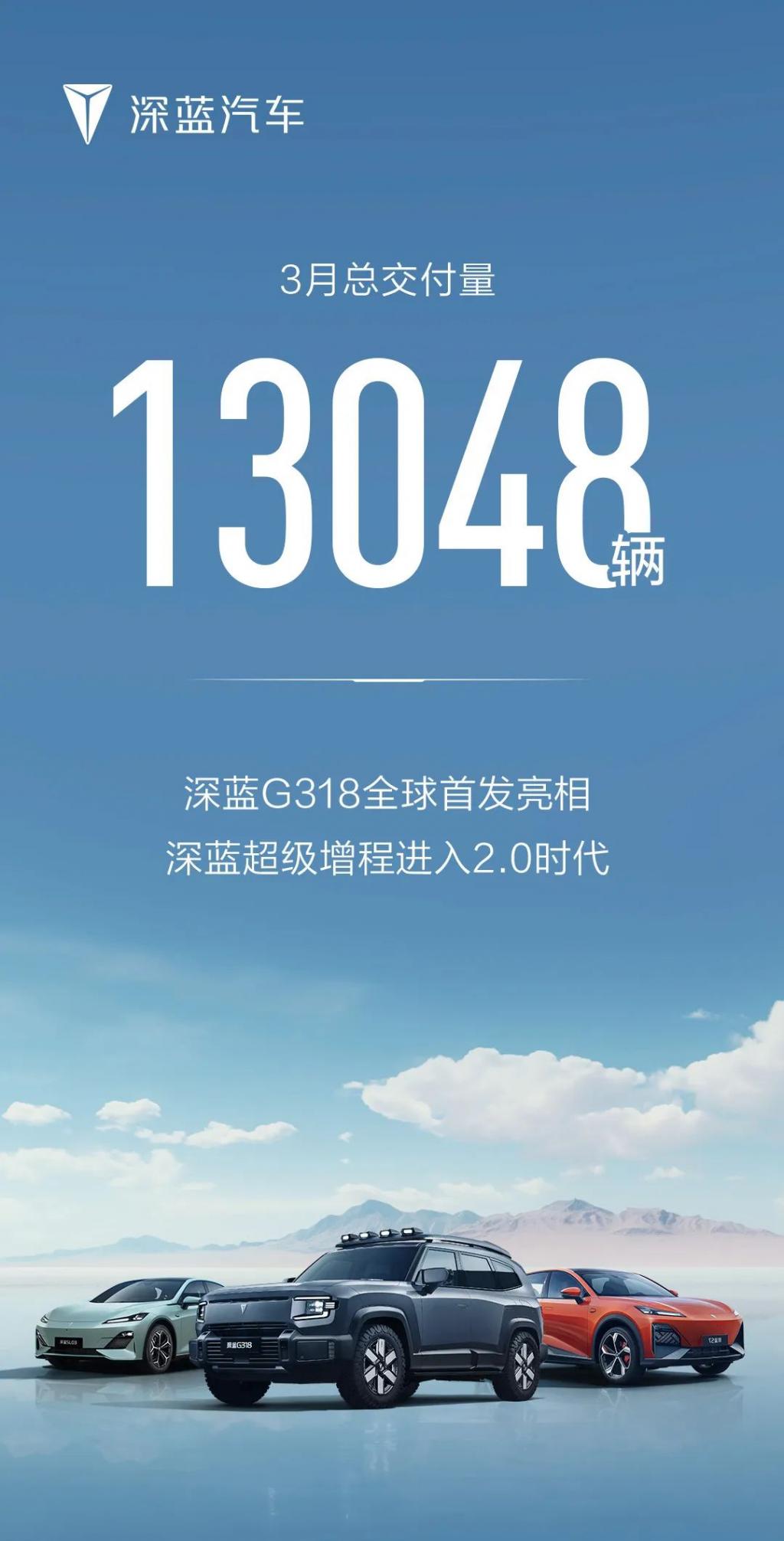 深蓝汽车 3 月交付 13048 辆,CEO 邓承浩称逐步回升但未达预期