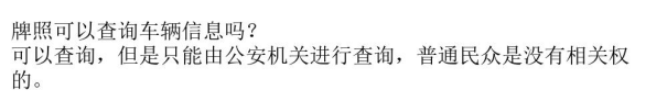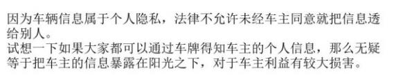 北京:一辆轿车在平时使用的时候很容易碰到乱停车,可以看出是否存在影响出入。湖南长沙市公安局官方回应“牌照可以查询车辆信息”:可能由警方进行查询,普通民众也没有相关权利。南宁:车辆信息属于个人隐私遭泄露,男子因车牌信息属个人隐私被曝光;法律不允许将其透露给别人。