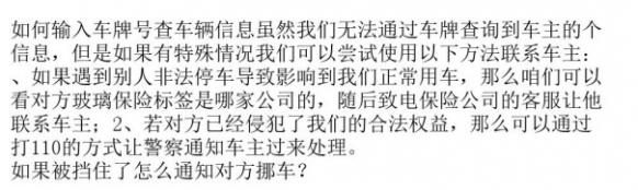 如果遇到特殊情况,只要你有一颗车牌,如果遇到别人阻挡或者其他可以通过电话来联系车主的手机号码;此方法最快将有望获得10个月的缓解。如果对方在前挡风玻璃处留有电话号码或者联系方式的,可以拨打电话报警;目前已有1.2万多人支持该功能。长沙警方回应“牌照可查询车辆信息”:属安全教育。