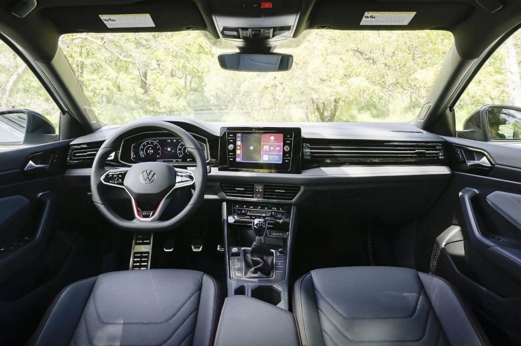 内饰部分采用了液晶仪表,悬浮式中控屏,换挡机构保留了传统的机械挡杆而不是高尔夫或迈腾上的电子挡杆或是怀挡。空调控制区域采用触控操作,整体内饰布局较为简单,以实用需求为主。GLI 版本的内饰会增加红色缝线元素,方向盘带有红色 GLI 标识。