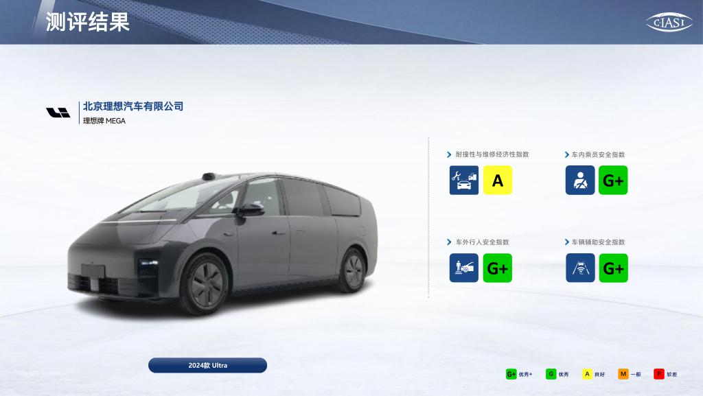 测评结果显示,在碰撞安全性方面,理想 MEGA、昊铂 HT、小米 SU7、极氪 007、理想 L6 均获得了车内乘员、车外行人、辅助安全三个大项全部 G+(优秀 +)的最高评价。