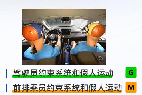 一汽丰田卡罗拉锐放在车内乘员安全性方面仅获得 M(一般)评价,是所有车型中唯一一个在三大安全性方面未获 G(优秀)或 G+(优秀 +)评价的。