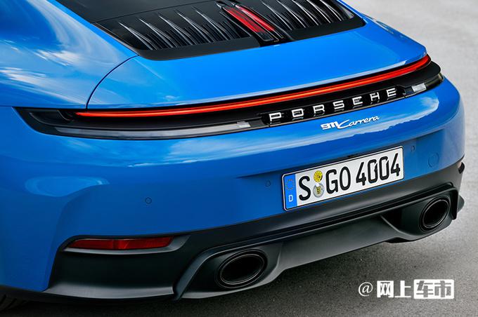 新 911 前脸换装四点式矩阵光束 LED 大灯,取消下方独立日行灯,进一步提升保险杠两侧冷却通风口面积,GTS 车型采用垂直排列主动式冷却空气导流板;首次在车身底部配备自适应前扩散板,可引导气流提升散热能力;贯穿式尾灯与品牌英文标识融为一体,上方配有可伸缩扰流板。