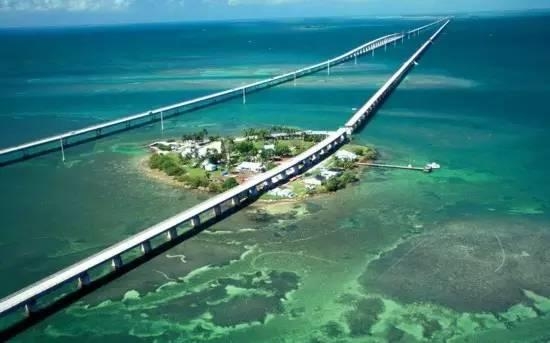 在佛罗里达群岛,是串连群岛众多岛屿的US1跨海高速公路中的42座桥梁中最长的一座,长度约为7英里(6.79英里=10.93公里),所以叫七里桥。大桥的一侧是墨西哥湾、另一侧是大西洋。它在很多大制作电影里都有出镜呢,比如阿诺德·施瓦辛格主演的《真实的谎言》、007系列的《杀人执照》、《玩命关头2-飙风再起》以及《舍不得你》。