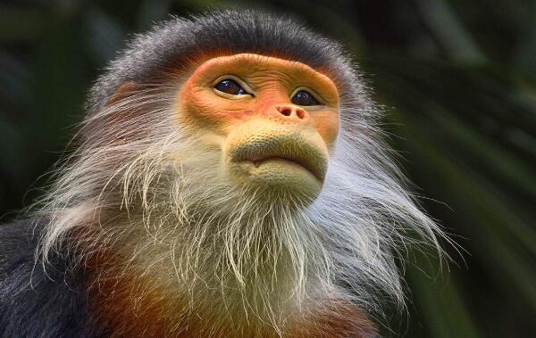 白臀叶猴除了屁股有三角白斑特殊外,它绚丽多彩的体色也令人瞩目:
