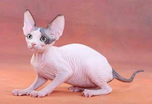 斯芬克斯猫是自然的基因突变产生的宠物猫,除了在耳、口、鼻、尾前锻、脚等部位有些又薄又软的胎毛外,其它全身部分均无毛,皮肤多皱有弹性。加拿大无毛猫性情温顺,独立性强,无攻击性,能与其它猫狗相处。