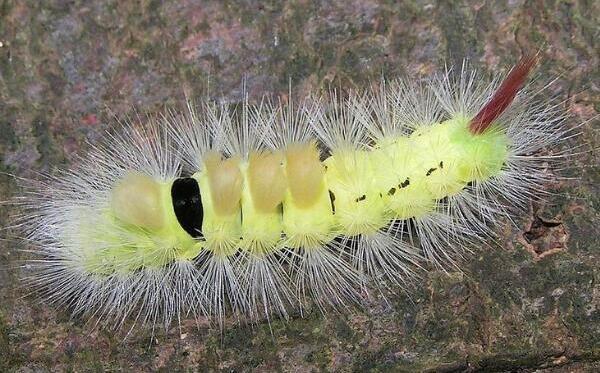 以上几种昆虫,要么是毒性令人恐怖,要么的致死率令人恐怖,而茸毒蛾则纯粹是长相恐怖了!如上图所示,它就是茸毒蛾,看起来是不是很恶心,也很恐怖呢?茸毒蛾浑身长有大量毛发,有很多脚,背上长的很多东西,细看之下恶心的让人想吐!