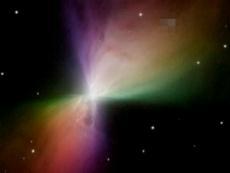 和其他星云不同,"回力棒星云"旋转的两翼并不平衡,这个天体之所以被称作回力棒星云,是因为天文学家最初使用地面望远镜对其进行观察时,发现其弯曲的外观与澳大利亚土著使用的武器回力棒相似,便以此命名。随着技术手段的进步,1998年,哈勃太空望远镜的观测结果对这一形状进行了修正--看起来更像一个蝶形的领结。