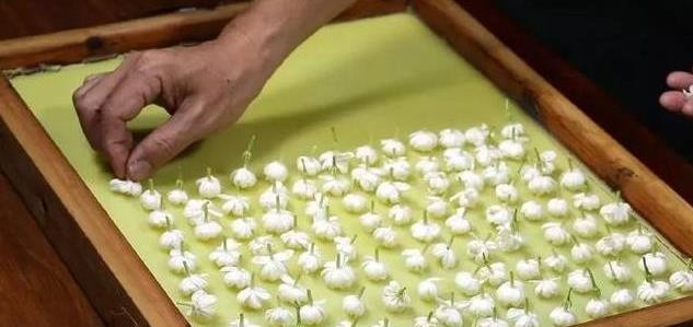 通过纪录片的镜头,我们可以看到郭斌在工作室内精心操作,他的每一个动作都透露出对这门古老技艺的尊重和热爱。在层层叠放着的木框内,茉莉花平铺在薄薄的一层植物凝脂上,静待时间去慢慢窨取着花朵的活性。这个过程需要极大的耐心和精细的操作,但最终制成的茉莉花膏香味饱和,恰到好处,是时间与自然赋予的珍贵礼物。