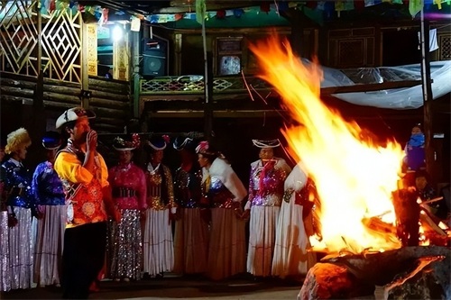 还可以参加摩梭人的篝火晚会,围着篝火跳甲搓舞,感受摩梭人的热情好客。