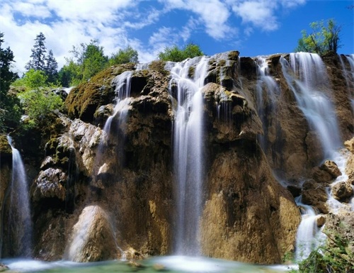 瀑布宽约270米,高约20米,滔滔水流自诺日朗群海而来,经瀑布的顶部流下,如银河飞泻,声震山谷。此外,还有珍珠滩瀑布、树正瀑布等,每一处都有其独特的魅力,让人流连忘返。