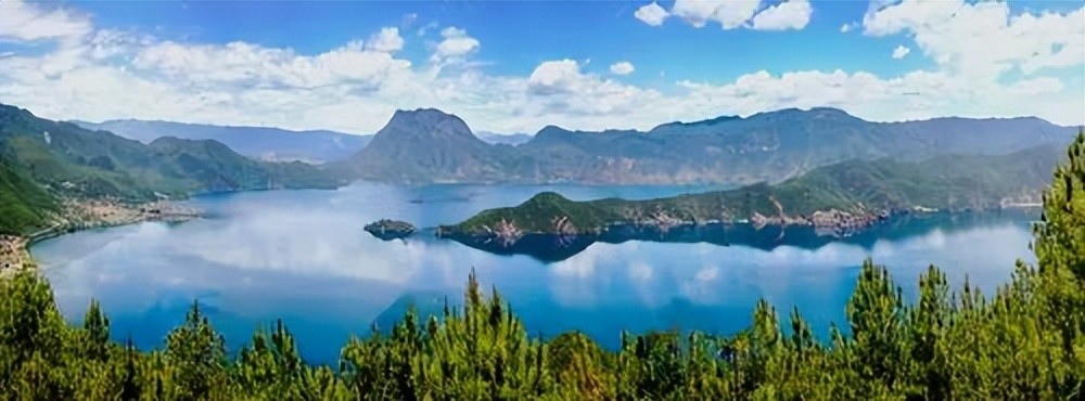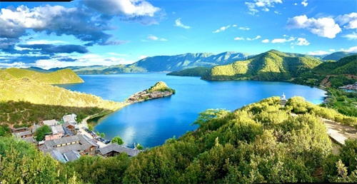 湖面呈北西—东南走向,南北长9.5公里,东西宽5.2公里,总面积达到50.1平方公里,是中国第三大深水湖泊,以其独特的自然风光和丰富的民族文化吸引着无数游客。
