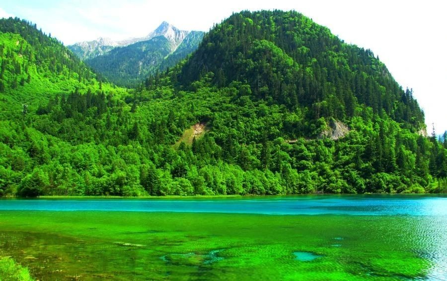 夏天,湖水碧绿如玉,山峦苍翠欲滴,清风徐来,让人心旷神怡;