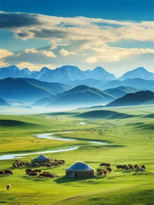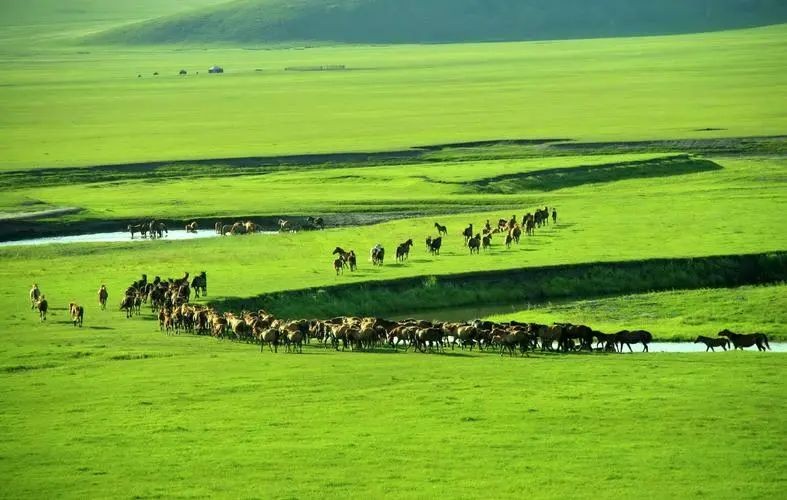 在这片绿色的海洋中,生活着无数牛羊和马匹,它们悠然自得地享受着这片丰饶的土地带来的恩泽。每年盛夏时节,呼伦贝尔草原绿草茵茵,野花盛开,牛羊成群,构成了一幅幅美丽的画卷。此时,正是游客们纷至沓来,感受草原风光的最佳时节。