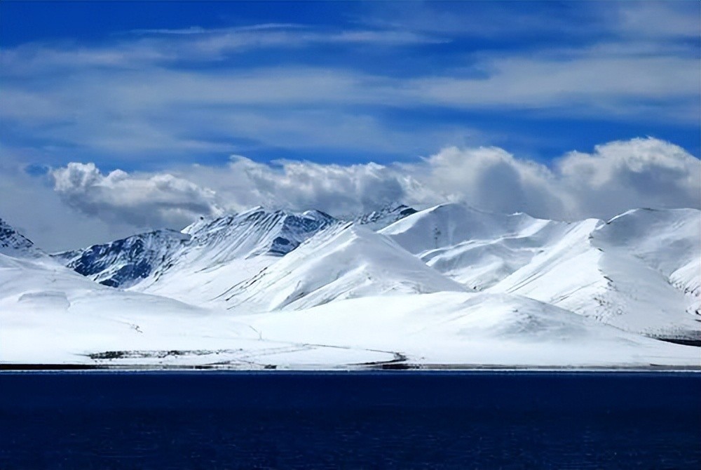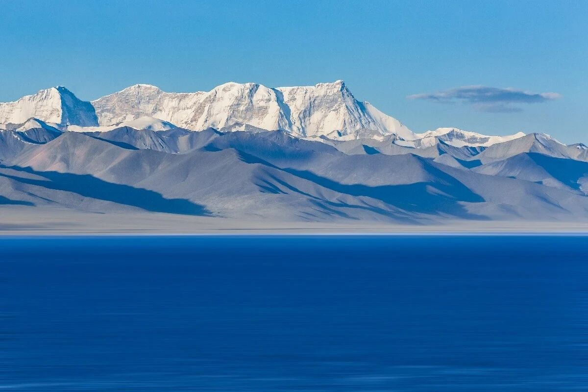 纳木错湖面海拔高达4718米,形状近似长方形,东西长70多千米,南北宽30多千米,面积达到了约1920平方公里。湖面如镜,倒映着蓝天白云和四周的山峦,景色美不胜收。