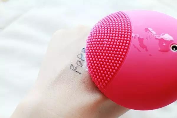 粉色款:这款是适用人群最广的,如果你想不好选哪一种,买粉色最不容易出错。粉色的刷头分两部分,上半部触点较粗,力度比较大,适合用来按摩鼻翼,下巴这些易出油部位。下半部的触点较细,可以用来按摩脸颊。因为FOREO本身是硅胶质地,所以不用担心粉色款会太刺激。普通敏感皮/干皮都可以购买这一款。