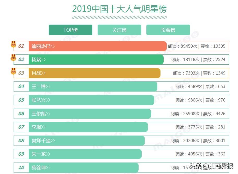 中国十大人气明星榜 明星排行榜2019 年最受欢迎明星是你期待的吗
