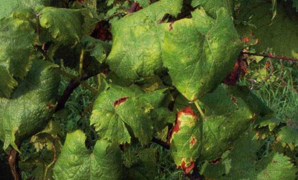 多发生在十字花科蔬菜及葡萄上。发病时叶片正面有不规则黄斑,叶背长灰白色至紫黑色霜霉层,病情发展快,会让叶片干枯,影响生长和产量。病原菌在病残体或种子存活,低温高湿、昼夜温差大时易流行。