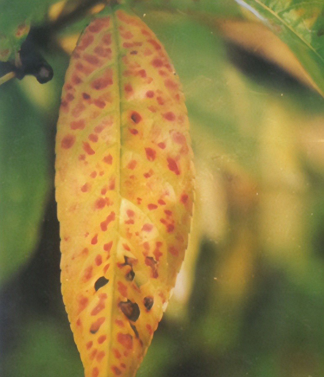 玫瑰、菊花、草坪草常受其害。发病部位出现铁锈色孢子堆,起初是褪绿小斑,后隆起破裂散出锈粉。锈病会削弱植株长势,严重时致叶片脱落、植株早衰。病原菌靠风、雨传播,温暖潮湿、通风差处易发病。