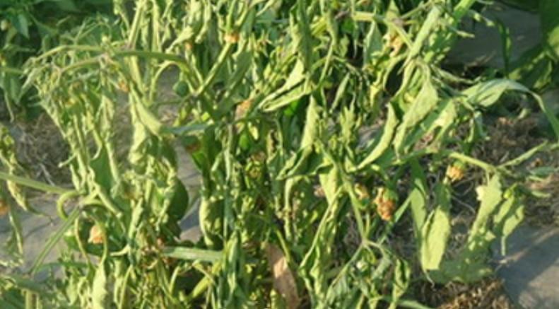常见于番茄、茄子、辣椒等茄科植物。发病初期顶部叶片中午萎蔫,早晚恢复,数日后整株叶片枯萎但仍绿色。茎基部维管束变褐,横切病茎有白色菌脓溢出。病原菌在土壤或病残体越冬,借雨水、灌溉水、农具传播,从根部伤口侵入,高温高湿、酸性土壤、连作地块发病重。
