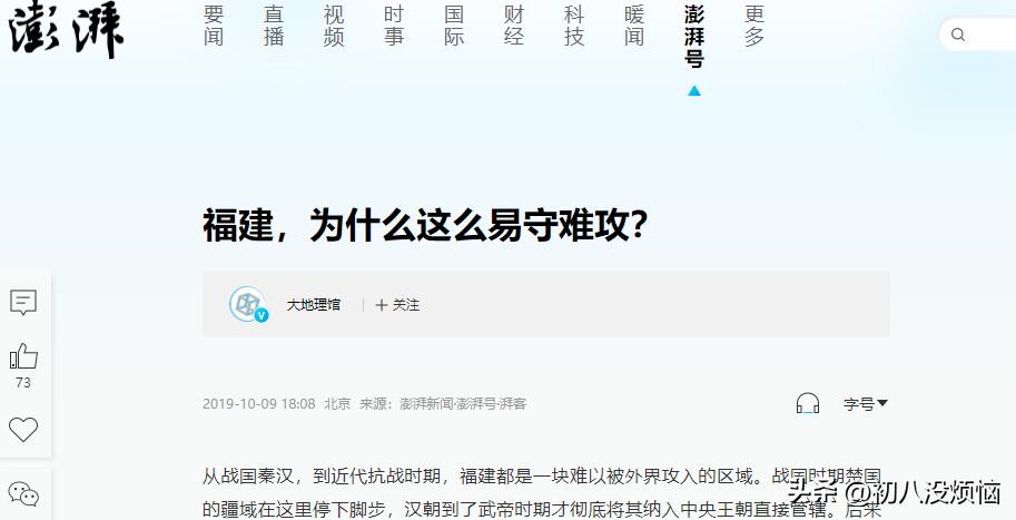 澎湃新闻——2019-10-09《福建,为什么这么易守难攻?》