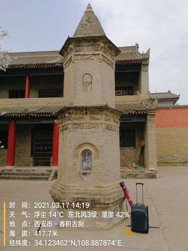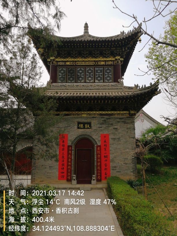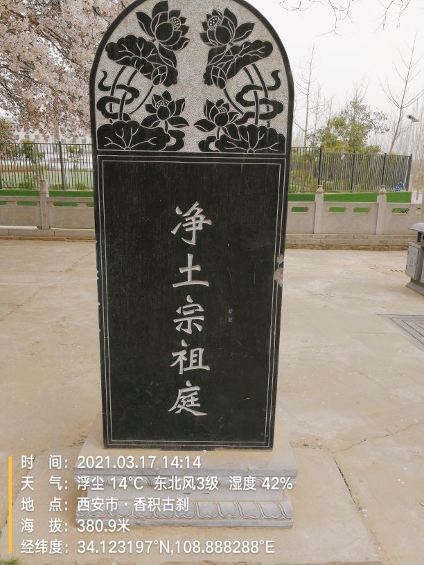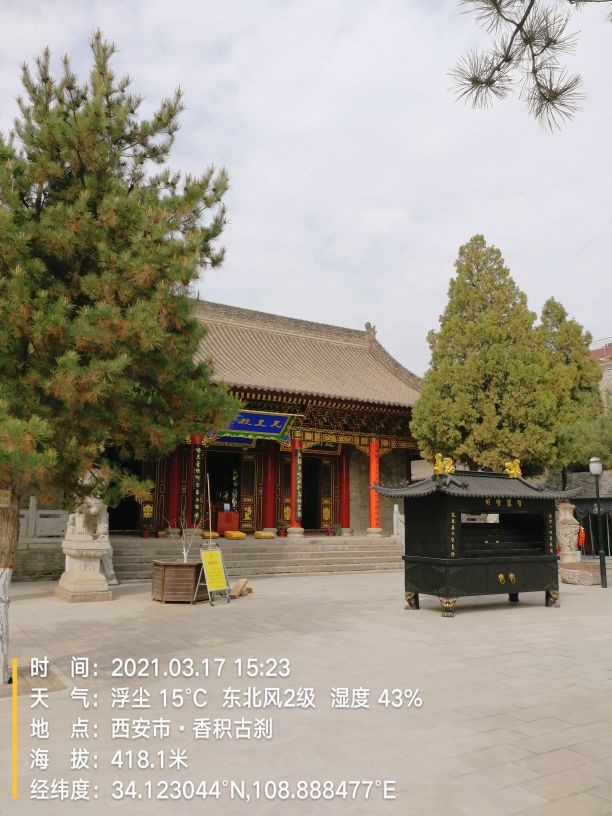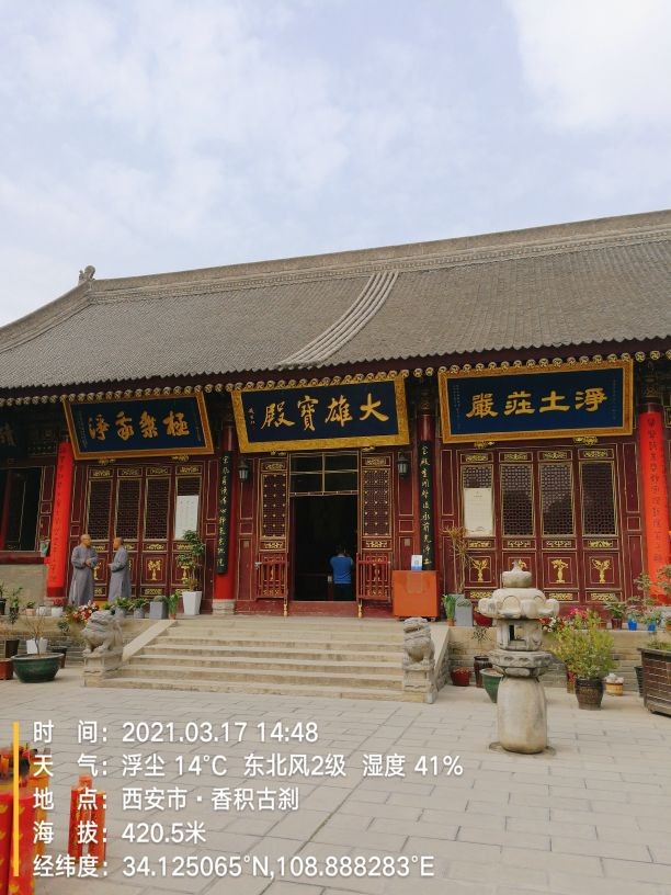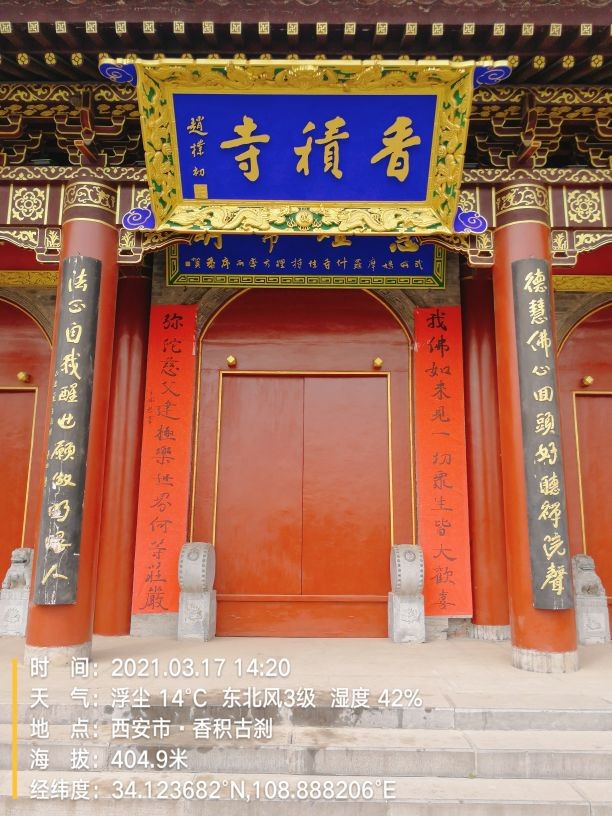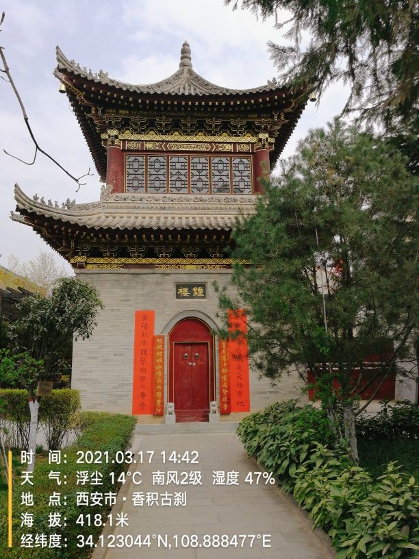 香积寺,地处今陕西省西安市长安区郭杜镇,东居神禾原,西傍潏水,南临滈河,北接樊川,坐北朝南地势高亢。其名源于佛典中“天竺有众香之国,佛名香积”。善导大师于已功德圆满,号称弥陀化身;于人乐善,似众香国的香气周流十方无量世界,启迪感化引导众生超度苦海。寺名香积,意喻净土宗师善导为香积佛。 唐朝为香积寺极盛时期。李治、武则天等多次亲临膜拜,并赐予舍利子、法器等供奉。宋、辽、金、元等各代,皇族、权贵等支持、信奉。明、清基本维持,清未、同治后多次毁于兵火,据传日本浪人乘机偷盗,许多文物失传。解放后多次修复,近年增置田产,修建设施,依滈河、潏河交汇处修建公园,拓展道路,游览便捷。