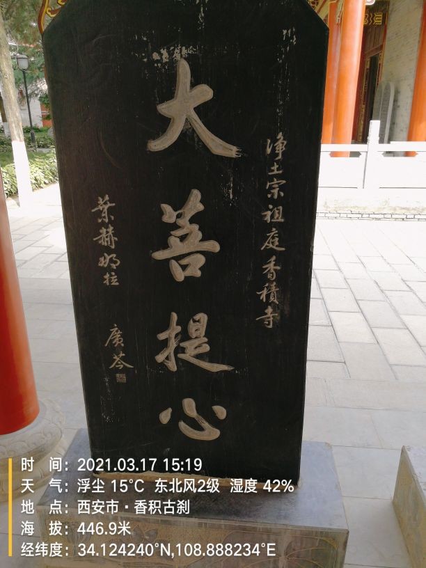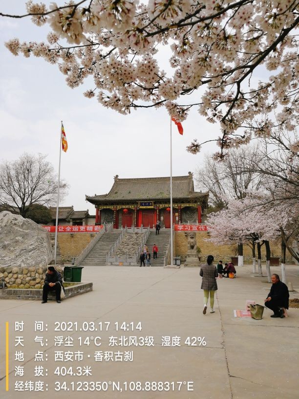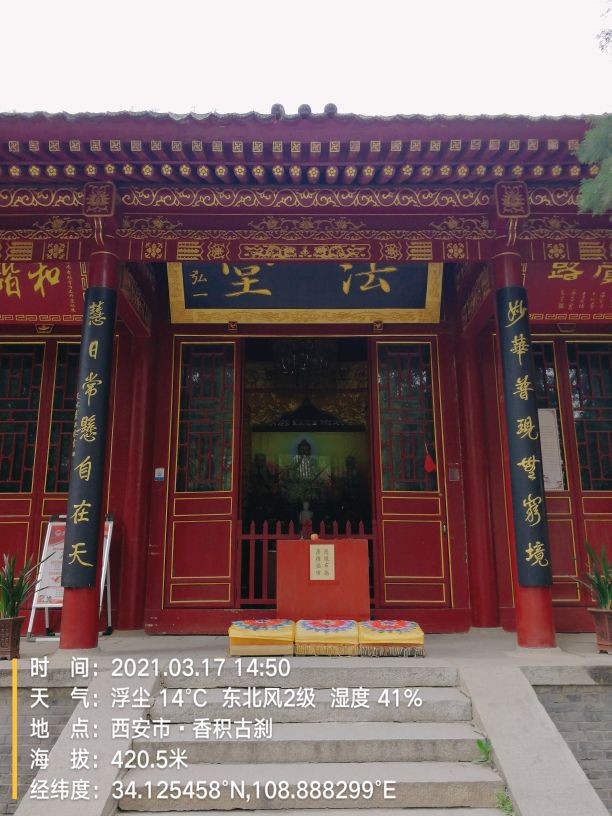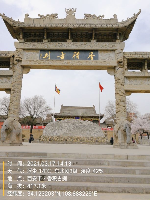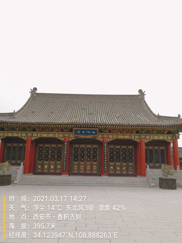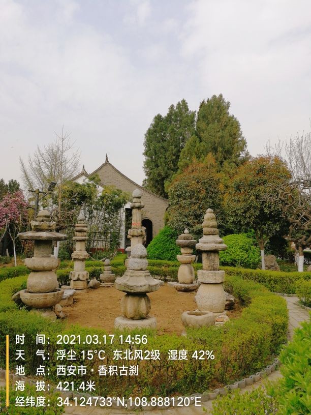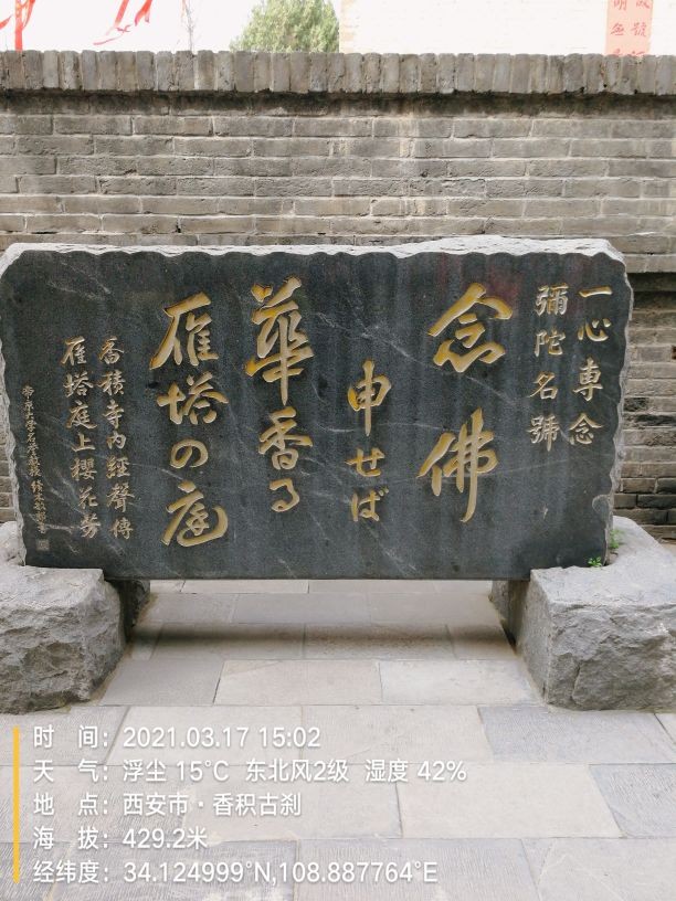 香积寺,地处今陕西省西安市长安区郭杜镇,东居神禾原,西傍潏水,南临滈河,北接樊川,坐北朝南地势高亢。其名源于佛典中“天竺有众香之国,佛名香积”。善导大师于已功德圆满,号称弥陀化身;于人乐善,似众香国的香气周流十方无量世界,启迪感化引导众生超度苦海。寺名香积,意喻净土宗师善导为香积佛。 唐朝为香积寺极盛时期。李治、武则天等多次亲临膜拜,并赐予舍利子、法器等供奉。宋、辽、金、元等各代,皇族、权贵等支持、信奉。明、清基本维持,清未、同治后多次毁于兵火,据传日本浪人乘机偷盗,许多文物失传。解放后多次修复,近年增置田产,修建设施,依滈河、潏河交汇处修建公园,拓展道路,游览便捷。