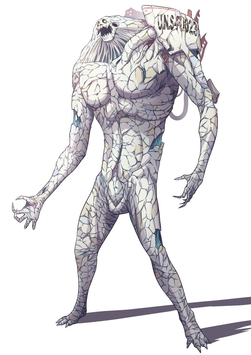 透明怪兽内隆嘎是远古时代潜藏在地底的怪兽,靠吸食电力为生,平常的时候身体呈现半透明状态,然后吸食电力后就会显形,能从头部的角和两旁边的触角交错发射高压电攻击目标,最后被初代奥特曼使用斯派修姆光线打败,而它的必杀技是暴君电击,这个形象是黑田朝生大神绘制的变异后的透明怪兽内隆嘎。