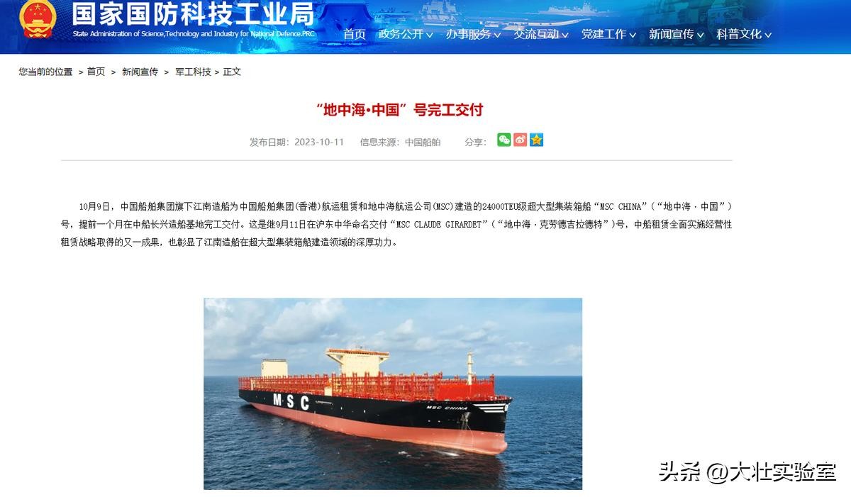国家国防科技工业局——《“地中海·中国”号完工交付》2023-10-11