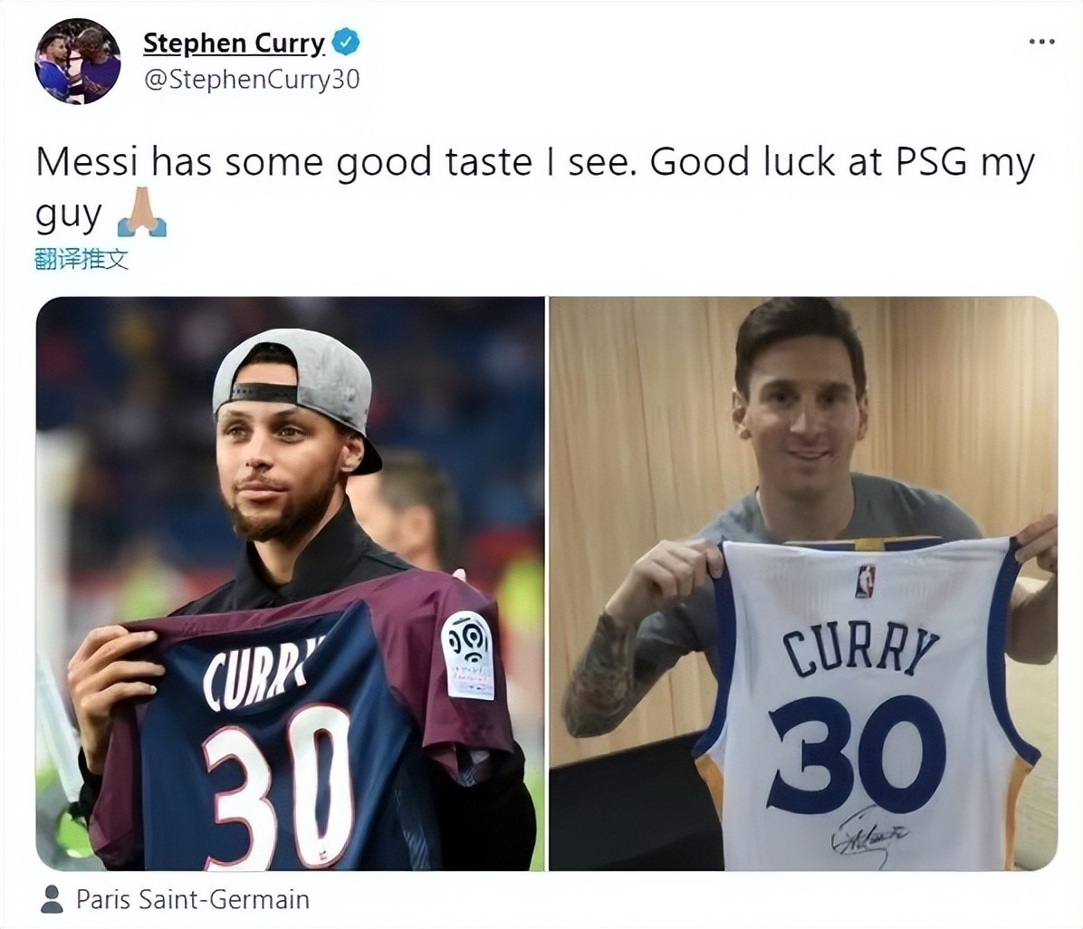 库里这辈子都穿30号,梅西去了巴黎之后也穿30号。