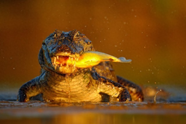 它是鳄鱼家族中最大成员,黑凯门鳄分布于南美洲北部,生活在在各式各样的湿地。在亚马逊河中,黑凯门鳄是最大的食肉动物,喜欢吃各种鱼以及大型动物,他们的牙齿可以轻松撕开猎物的身体,然后将整个部分直接吞入腹中。他们是最勇敢的鳄鱼家族成员,能捕食像水虎鱼和水马这样危险的猎物。对于体型太大而无法吞食的动物会进行死亡翻滚。黑凯门鳄除了人类和美洲豹,他们在生活的地方可以说没有天敌了,绝对称得上是霸主。目前他们没有攻击人类的记录,但他们完全有能力做到这一点。