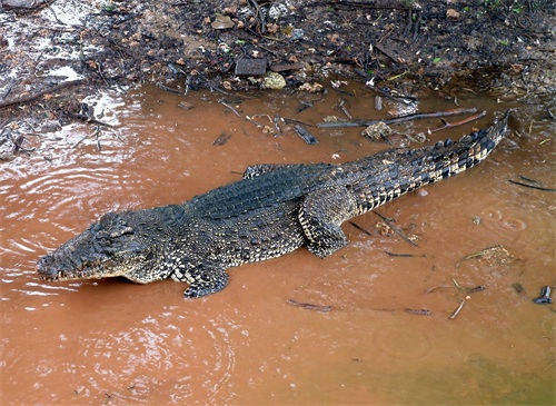 马来鳄又叫马来切喙鳄,身体的平均长度为四米,体重约210公斤,体型在鳄鱼中可能不是很大的,是一种淡水鳄鱼。它有一个特别之处,那就是它的鼻子看上去又细又长,但这并不是用来装饰它们外表的,而是专门为他们捕鱼所设计的。他的性情十分凶猛且狡猾,潜伏在泥潭沼泽灵时不时的想增加菜单。除了鱼类,他们还会吃喜欢在树上的哺乳动物。比如猕猴,它有非常锋利的牙齿,让所有猎物基本上是无法逃脱,全身上下遍布了棕色和黑色的斑马来鳄,十分凶猛狡猾,甚至有爬上渔船袭击渔民的事件。
