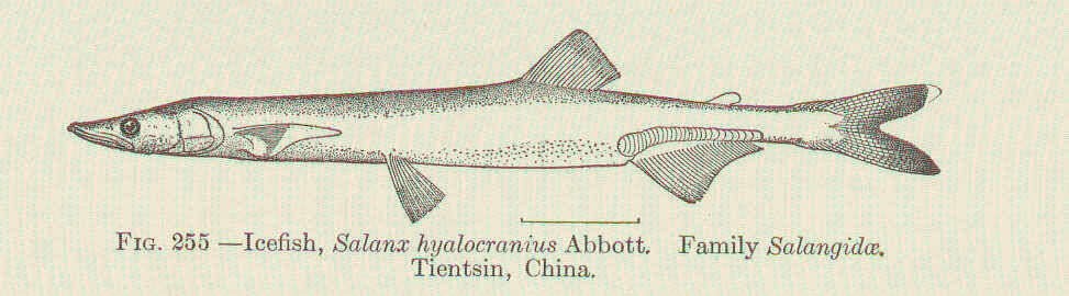 大银鱼身体细长,形似面条,俗称面条鱼、面杖鱼。此鱼有一特殊习性,那就是会发生食性转变:规格较小时,大银鱼以浮游动物为食;当体长达到8cm左右时,开始转变食性,能捕食一些小型鱼类;体长超过12cm时,食性凶猛异常,全以小型鱼虾为食,并有同类相食的现象。