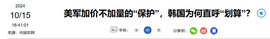 新华网-中国军网(2024-10-15)——《美军加价不加量的“保护”,韩国为何直呼“划算”?》的报道