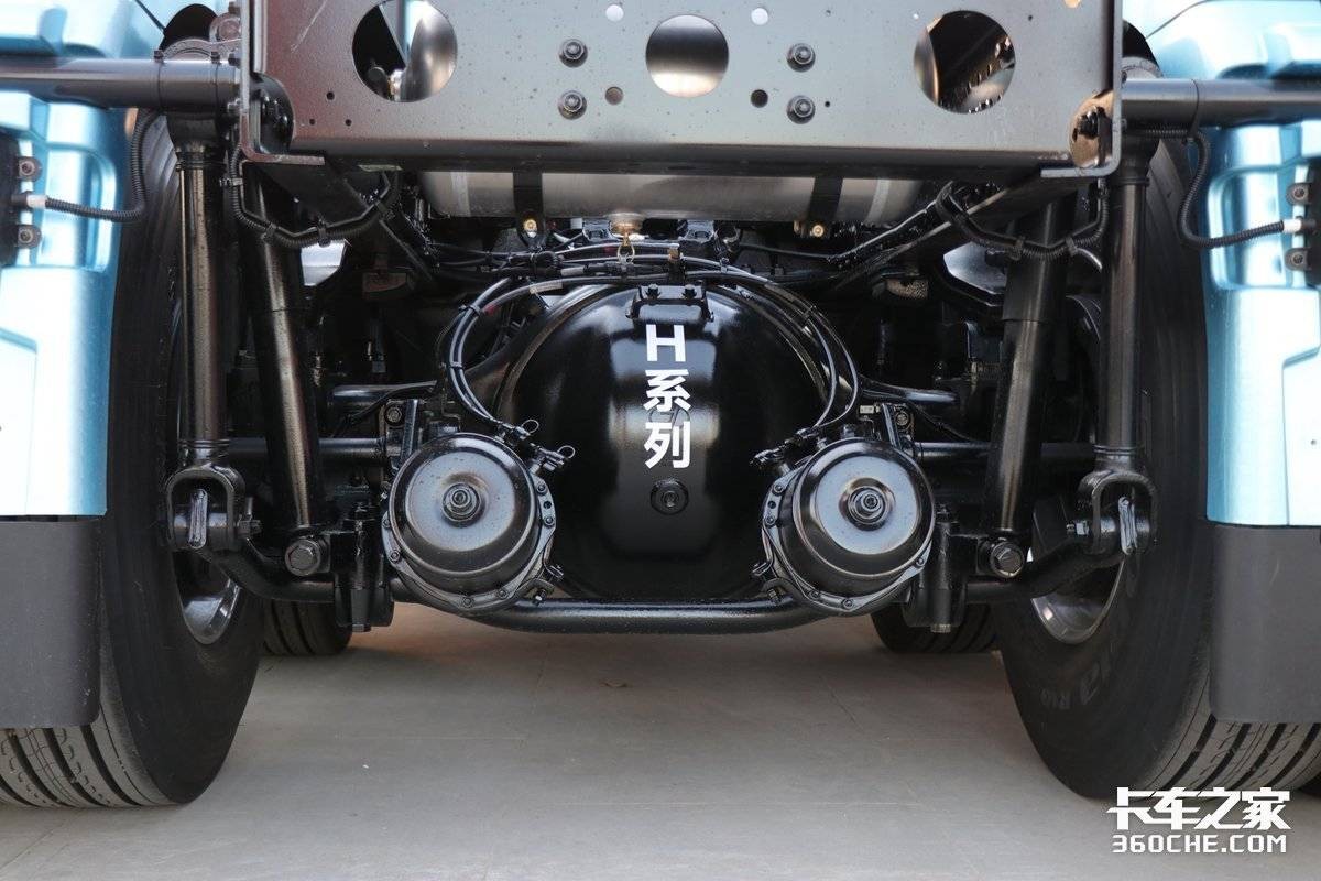前后桥均采用的是汉德产品,可选用免维护设计,后桥为汉德H系列高效后桥,传动效率高达98.8%,可以让来源于发动机的澎湃动力更完整的传递至轮间。