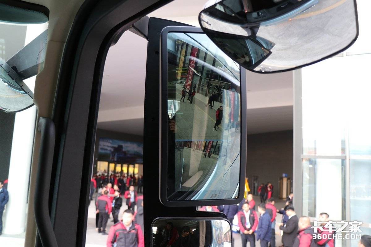 并且将传统后视镜与电子后视镜的显示屏结合在一起,后视镜的上部分为电子后视镜的显示屏。和此前常见的位于驾驶室A柱内侧的显示屏相比,在白天光线比较亮的情况下观看,其清晰度和观看便利度还存在一定的差异。