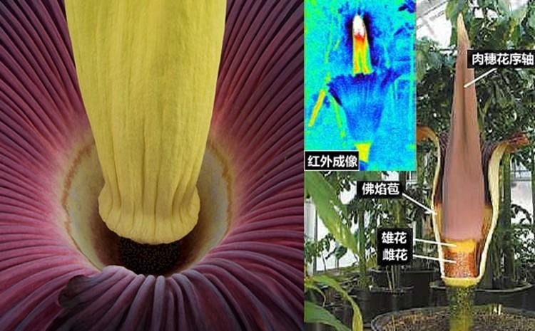 在花开的时候,巨魔芋的佛焰苞还会变为深紫色,用来模拟腐肉的样子。为了扩大气味的传播面积,其肉穗花序还会把自己的温度提高到36℃左右,在温度的加持下,强烈的腐尸气味能扩散到方圆800米左右。
