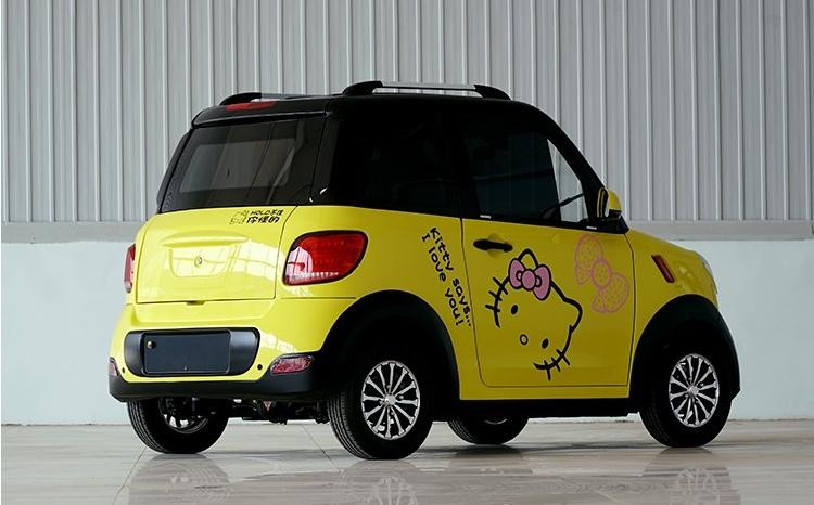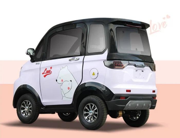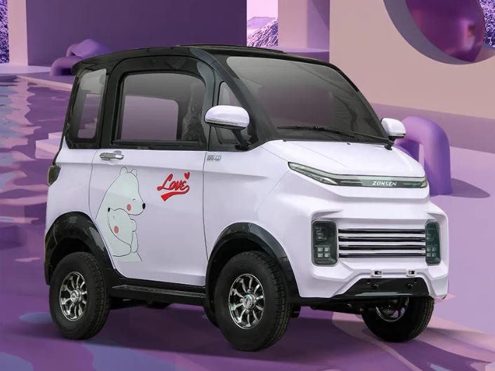 慕缘阳光M1同样是一款看上去比较好看的车型,车辆的造型和第一款、第二款相差不多,都属于小巧可爱的一种,不同的是,这款车的前脸格栅很少,走的是简约风格,而车辆在靓色和可爱贴画的加持下,看上去还是比较好看的,车辆标配两门四座,但可以升级为四门四座,车主可以根据需求选择,不影响载人实用性。