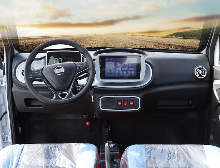 而这款车的配置也很出色,车辆采用冲压铁壳车身,坚固防撞能力好,车辆配置的四轮碟刹,制动距离缩短,制动反应速度加快,行驶车辆更安全,另外,车辆还配置四轮弹簧减震,道路行驶的舒适性有所保障,另外,车辆还有冷暖空调,倒车雷达、倒车影像,手机定位,蓝牙连接,大屏MP5等智能科技配置。