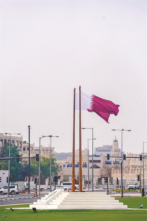多哈街头,飘扬的卡塔尔国旗