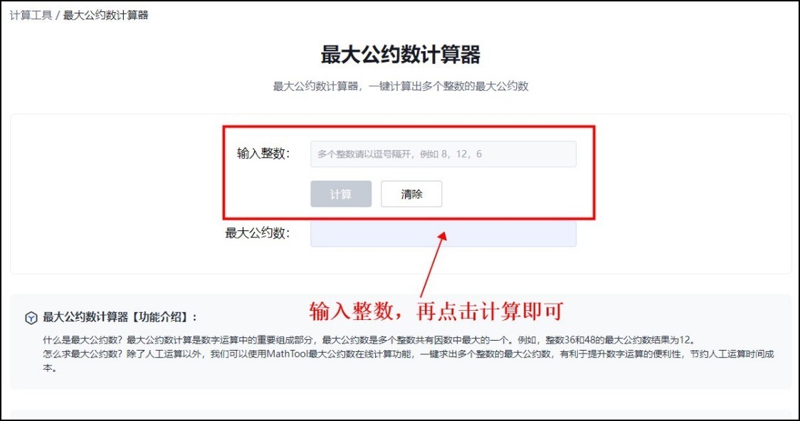 点击后,我们在输入整数里输入自己需要计算的整数,最后点击下方的【计算】即可自动求得结果。如果我们还是有不懂的地方,还可以看下方的功能介绍。