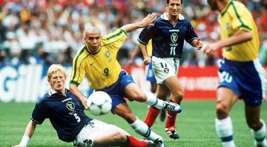 A组巴西、苏格兰、摩洛哥、挪威,一强三弱的格局。独狼罗马里奥已经不在,现在巴西队的头牌是1996、1997年世界足球先生,如日中天的“外星人”罗纳尔多(还记得1994年世界杯时罗纳尔多青涩的样子吗?我在上一期介绍1994年美国世界杯那篇文章里有图),前场三叉戟是罗纳尔多、贝贝托、里瓦尔多,后卫线上由巴西双卡卡福、卡洛斯左右护法,可谓巨星云集。巴西队的主教练是巴西足球史上的传奇扎加洛,作为球员他获得过1958年、1962年世界杯,作为主教练他率队在1970年夺冠,1994年美国世界杯巴西队夺冠,他是助理教练。他还是世界上唯一一个在不同的年代同时执教过贝利和罗纳尔多两位巴西球王的主教练。