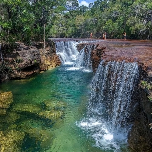 游轮在前往卡卡杜国家公园途中,经过了卡斯卡特瀑布,于是船停下休息,而这位美多斯和她的朋友则打算游水玩乐。