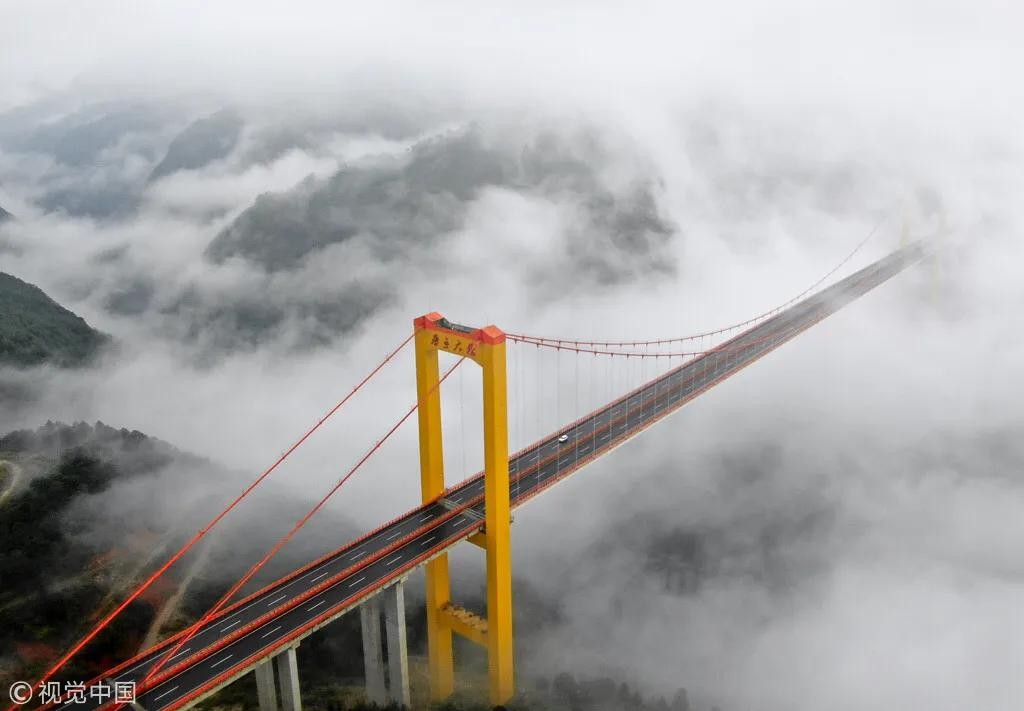 9. 六广河特大桥:六广河特大桥是一座位于中国贵州省连接息烽县和黔西县的过河通道,位于六广河之上,是息黔高速公路的组成部分之一。它以375米的高度成为世界最高桥梁之一。