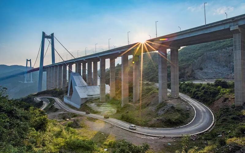 2. 金沙江特大桥:金沙江特大桥位于云南省丽江市华坪县与四川省攀枝花市盐边县交界处的雅砻江上,距离丽江市区60余公里。它以其512米的高度成为世界上第二高的桥梁。
