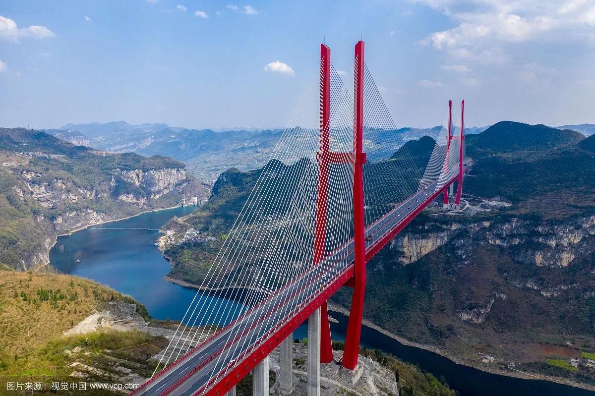 10. 鸭池河特大桥:鸭池河特大桥是中国贵州省境内连接毕节市与贵阳市高速通道,位于鸭池河水道之上,也是贵阳—黔西高速公路(贵黔高速S82)上的重要节点工程。它以436米的高度成为世界最高桥梁之一。