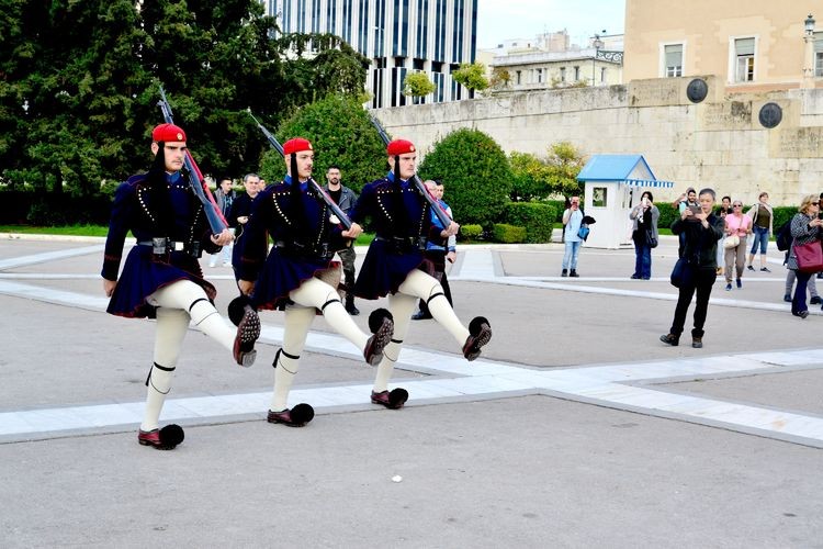 无名战士纪念碑前站岗的卫兵,身穿传统军礼服,脚蹬红色的翘头皮鞋,鞋头黑色的绒球很显眼。